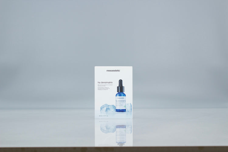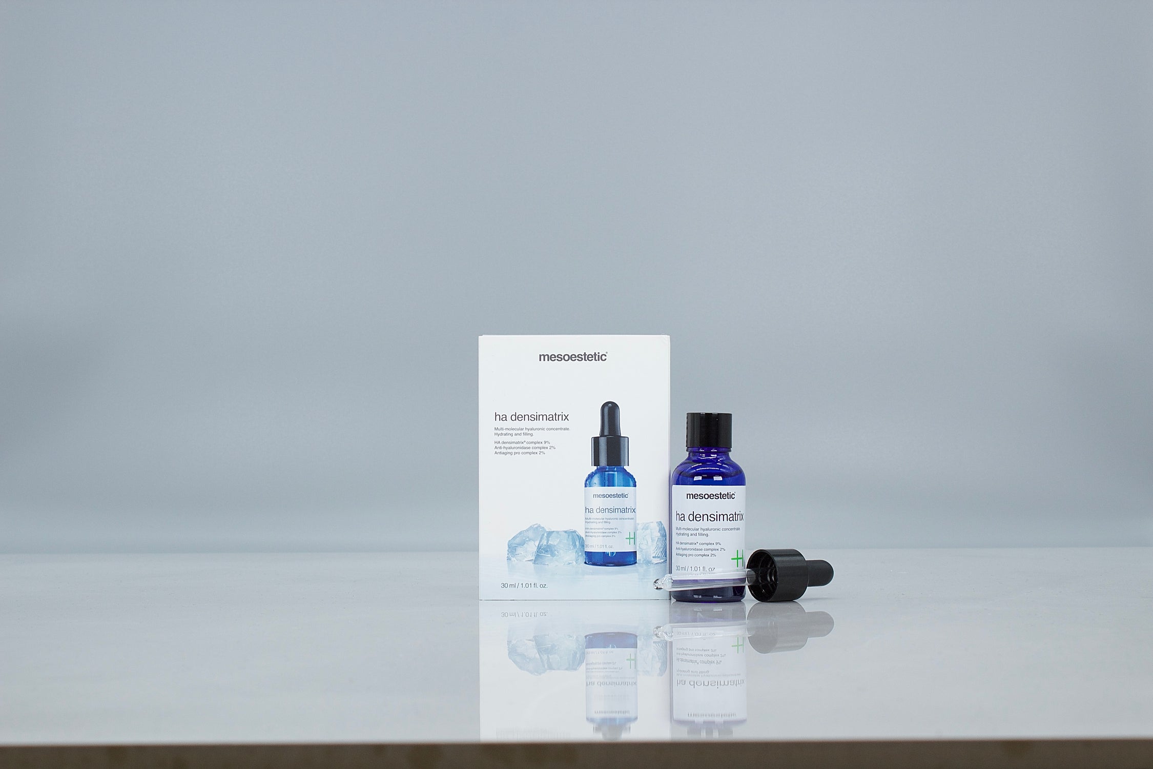 De Mesoestetic HA Densimatrix™ is een hydraterend serum met hyaluronzuur. Het hyaluronzuur is van een reticulaire vorm, welke compacter is, en daardoor voor meer vochtretentie zorgt. Ook zitten er verschillende moleculaire gewichten hyaluronzuur in. Het hyaluronzuur met het laagste gewicht kan dieper in de huid dringen om de huid daar te hydrateren, terwijl de zwaardere moleculen meer in de bovenste huidlagen de huid voeden. Dit zorgt voor een intensief gehydrateerde huid welke soepel en sterk aanvoelt.